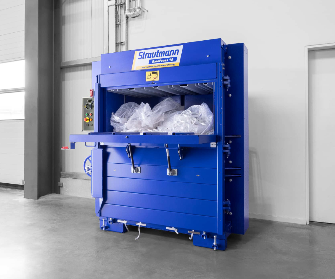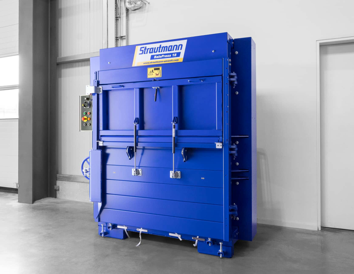 Bei einer grösseren Jahresabfallmenge ist unsere BP 18 genau die richtige Lösung für Ihre Entsorgung. Zuverlässig und stark verdichtet sie Ihren Wertstoff in hochverdichtete Ballen. Ausgestattet mit unserer TopPlus® Pressschildführung und der Zeitsteuerung wird das Volumen Ihrer Wertstoffe stark reduziert und wertvoller Lagerplatz wird eingespart. Mit Materialwahl-Schalter Karton/Folie, Stecker CEE16A.
