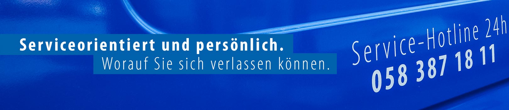 Für zuverlässigen und effizienten Service sind wir bestens eingerichtet. Unsere geschulten Servicetechniker verfügen über eine eigene Werkstatt mit Schlosserei, Schweisserei und Malerei, modernste Service-Fahrzeuge, ein Ersatzteillager sowie einen Fuhrpark mit Abrollkipper- und Absetzkipperfahrzeugen. Je nach Vertragsmodell werden Unterhalts- und Reparaturarbeiten nach Aufwand oder via Servicepauschale verrechnet. Sprechen Sie uns an – wir finden gerne die für Sie wirtschaftlichste Lösung.